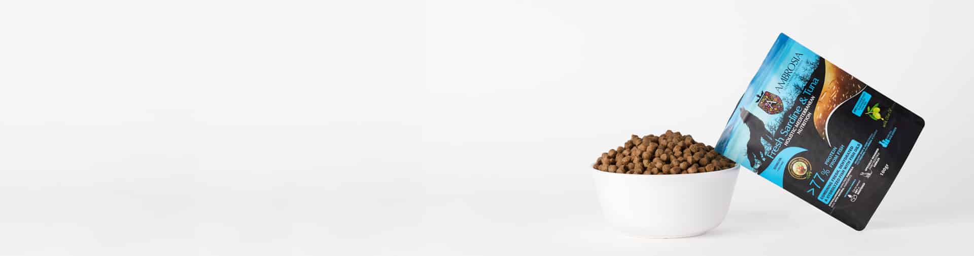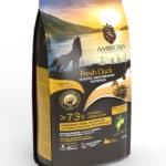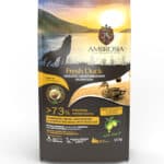 All of our Ambrosia range of products are free from GMO’s, and artificial colorings. They are also free from cereals, corn and soy. All recipes combine high-quality protein sources and olive oil to create a unique flavor. Hydrolyzed protein is also used to enhance the hypoallergenic properties of the food. The addition of prebiotics and probiotics promotes digestive health, while a good ratio of omega 3’s and omega 6’s help maintain a healthy skin and coat. Ambrosia's Fresh Duck, is a superior grain free kibble that is offering optimal nutrition for all breeds of sensitive adult dogs.